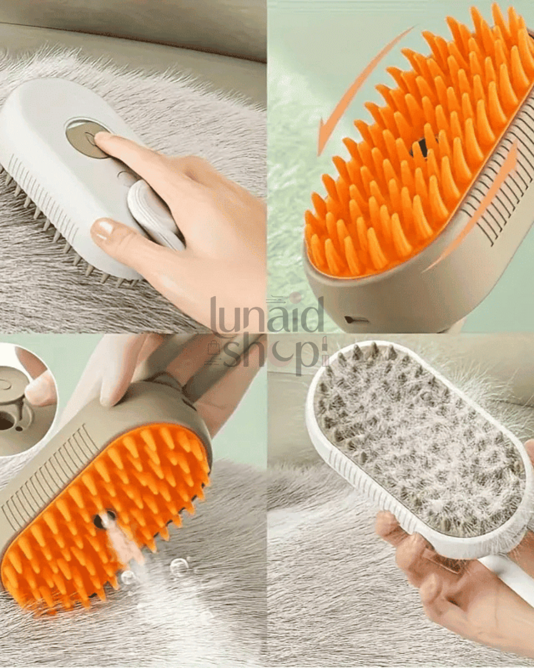 Cepillo de Vapor 3 en 1 para Mascotas esta diseñado con tecnología Nano Mist Spray, una suave brisa fresca que elimina sin esfuerzo la suciedad y el pelo suelto del pelaje de su mascota. Tu compañero peludo se mantiene fresco y contento, ¿y la mejor parte? ¡Tu hogar permanecera felizmente libre de bolas de pelo!